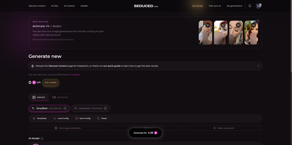Create custom adult AI images in seconds with Seduced. Simple prompts, realistic results, and endless fantasy combinations in one generator.