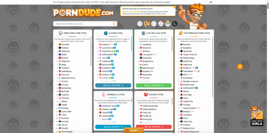 What keeps people glued to ThePornDude.com is the sheer honesty and dirt-level transparency. Each review drips with sarcasm and humour, making you laugh while scrolling for your next orgasm. You’ll find everything from big tube sites to niche kinks, cam sites, VR porn, and even AI girlfriend platforms. It’s not just a directory, it’s a dirty encyclopedia.
