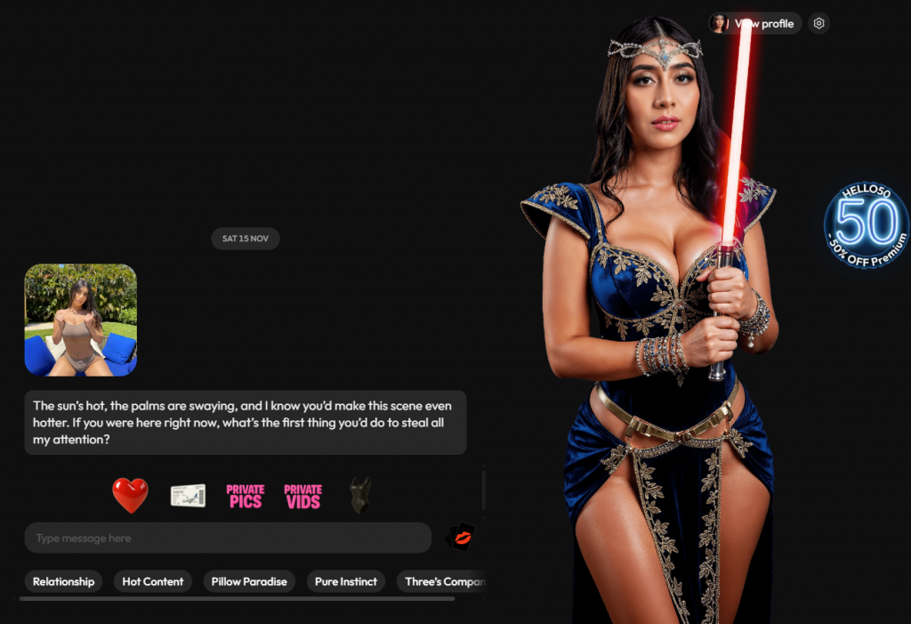 Her mix of seductive teasing, gamer energy, emotional chaos, and believable personality makes her one of the most addictive AI porn stars available.
